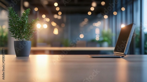 Contemporary Workspace with Laptop and Blurred Background Elements