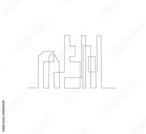 continuous drawing vector one line Panoramic landscape of Metropolis architecture. Hand drawn silhouette of skyscraper. Apartment building isolated minimalist illustration