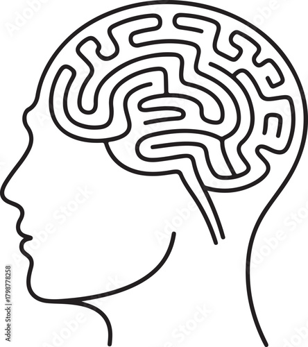 Continuous line art illustration of maze forming inside shape for abstract and conceptual design