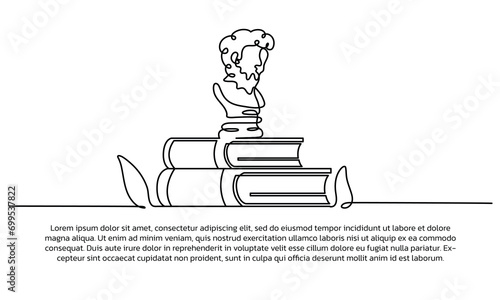 Continuous line design of studying philosophy with book. Single line decorative elements drawn on a white background.