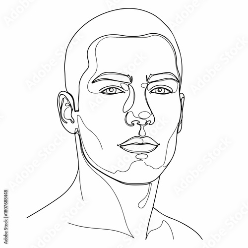 Continuous Line Handdrawn Realistic Man Face Portrait Illustration