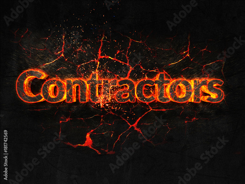 Contractors Fire text flame burning hot lava explosion background.