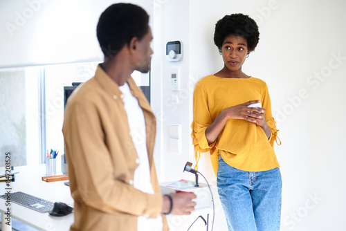 Conversation during break in the office