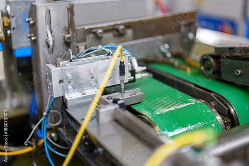 Conveyor system with machinery parts in an industrial setting during daytime operation