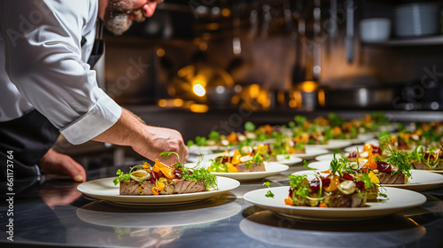 cook perparing food for festive in a restaurante