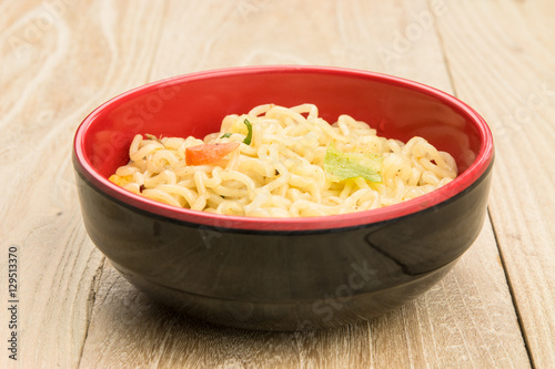 Cooked instant noodles in a bowl