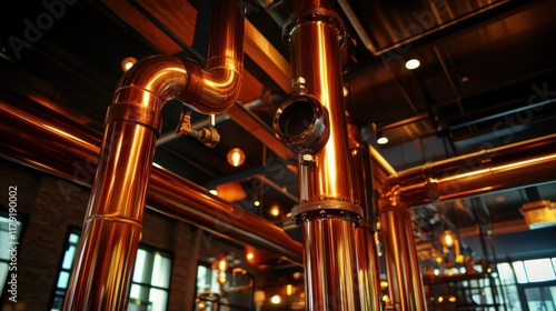 Copper Pipe Installation in Modern Brewery with Industrial Design