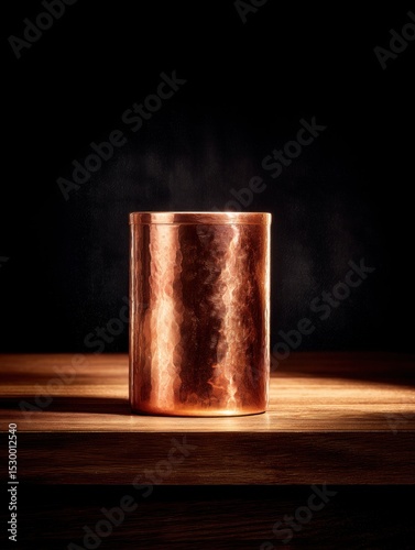 Copper tumbler on a wooden surface.