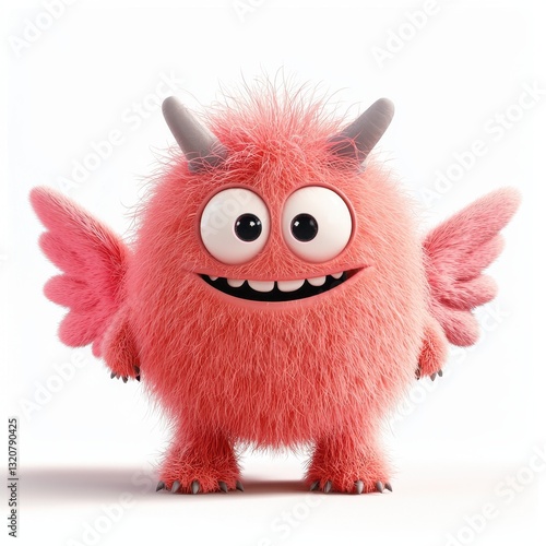 Coral Pink Furry Monster with Tiny Wings and a Cheerful Look, isolated on clear white background