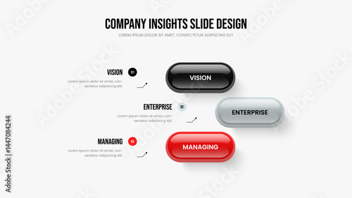 Corporate Introduction Three Element Infographic Frame Design. Modern Performance Slide Layout Vector Illustration. Financial Launch 3 Step Diagram Presentation Template.
