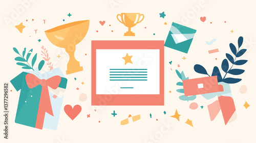 Corporate Recognition Flat Lay Illustration, Incentives