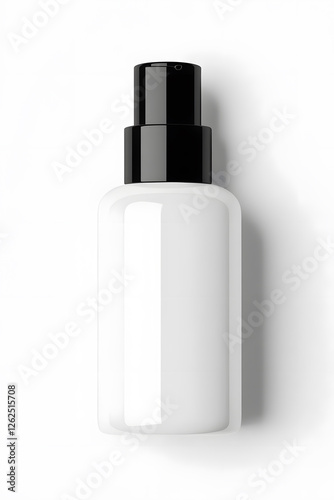 Cosmetic serum pump white bottle, dispenser container mock up. Foundation cream jar, airless pump dispenser design isolated on white background