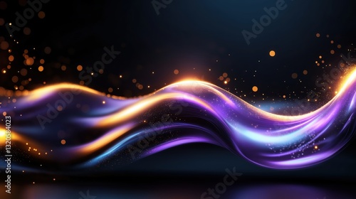 Cosmic abstract waves with luminous blue and vibrant purple streaks enhanced by golden shimmer and futuristic neon effects