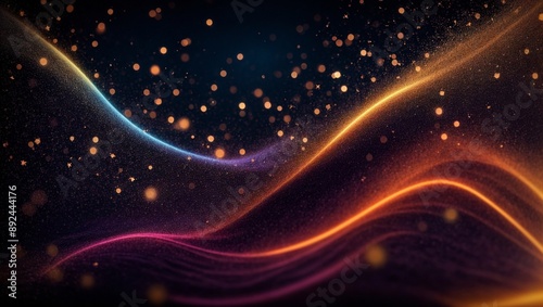 Cosmic Energy: Abstract digital art depicting swirling, ethereal light trails in vibrant hues of blue, orange, and pink, against a backdrop of twinkling stars and a deep indigo void. It conveys a sens