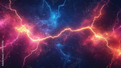 Cosmic energy bursts across nebula. Ideal for fantasy, sci-fi, or power themes.