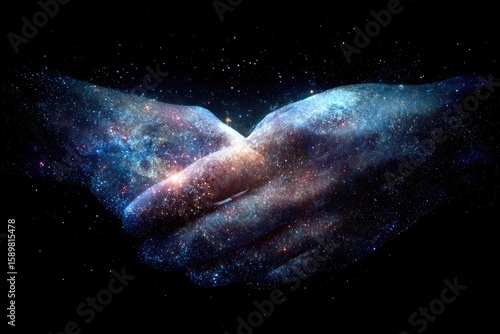 Cosmic hands clasped in space