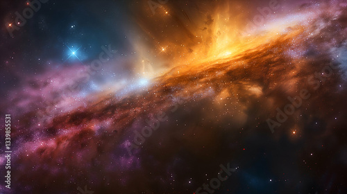 Cosmic Nebula Orange and Purple Stars, Celestial Night Sky Design