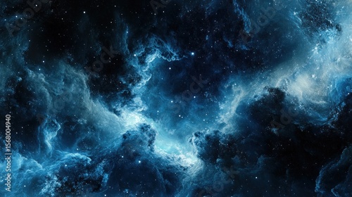 Cosmic Nebula: Stunning Blue and Black Space Cloudscape with Stars