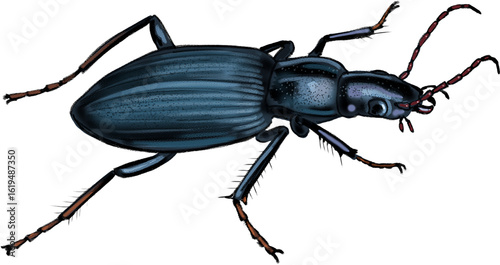 Cosmopolitan beetle, a widespread species found in various habitats, featuring a shiny, compact body and strong legs.