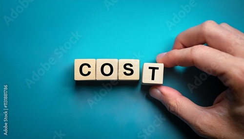 COSTの文字が書かれた木製のキューブブロック。aiで生成