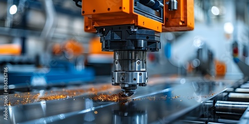 Costeffective CNC machine in contemporary industrial setting. Concept CNC Machine Selection, Industrial Efficiency, Cost-Effective Solutions, Modern Manufacturing, Optimizing Production