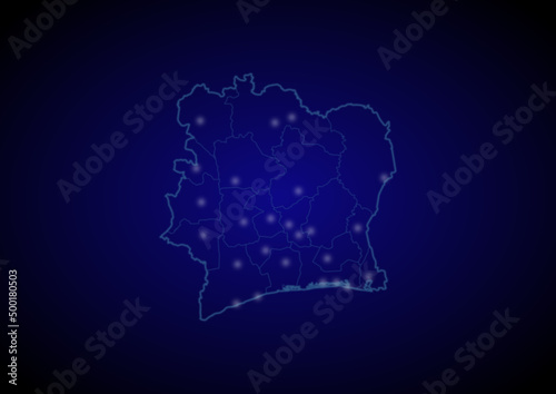 Côte d'Ivoire concept vector map with glowing cities, map of Côte d'Ivoire suitable for technology,innovation or internet concepts.