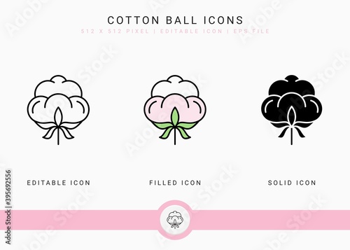 Cotton Ball icons set vector illustration with solid icon line style. Cotton Flower concept. Editable stroke icon on isolated background for web design, user interface, and mobile application