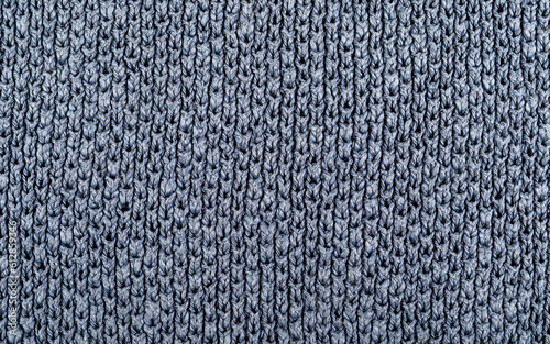 Cotton knit texture in blue color. Background and texture. Close-up.
