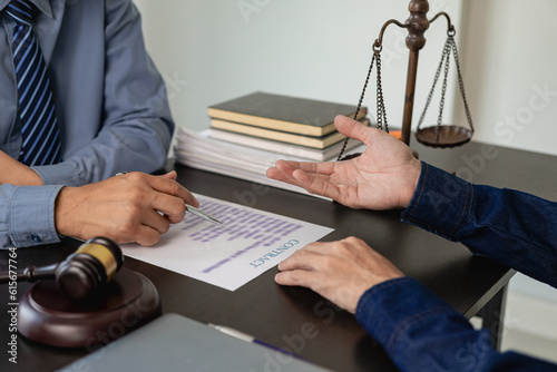Counseling between businessmen and male lawyers or judge counseling offers team meetings with clients, legal and legal services concepts.