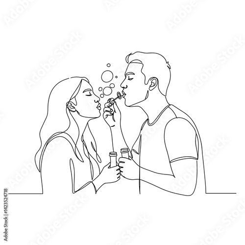 Couple blowing bubbles together in a minimalist style