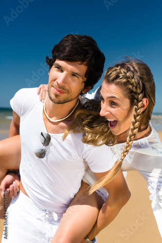 couple on ocean beach enjoying their vacation