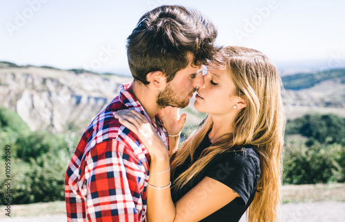 Couple passionated kiss