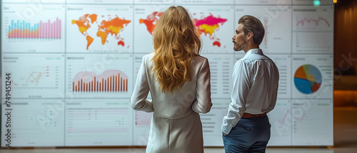 couple team looking at the map chart data analytic, statistical data analysis, lead meeting with employee at office