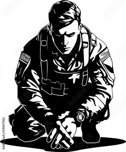 Courageous Conviction Soldier Symbol Design Sentinel Salute Kneeling Soldier Icon Vector