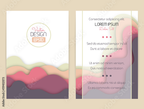 Cover design with curved shapes as a wave or hill. Brochure, flyer, invitation or certificate. Material design. Size a4. Vector illustration, eps10.