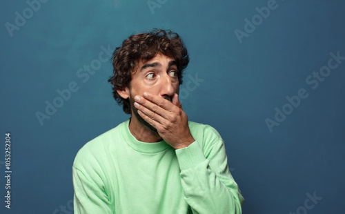 covering mouth with hands with a shocked, surprised expression, keeping a secret or saying oops