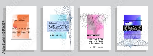 Covers templates set with graphic geometric elements. Applicable for brochures, posters, covers and banners. Vector illustrations.