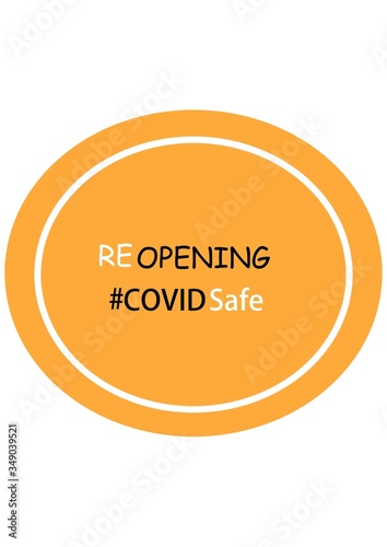 COVID safe orange round illustration sign for post covid-19 coronavirus pandemic, covid safe economy and environment business concept. Reopening