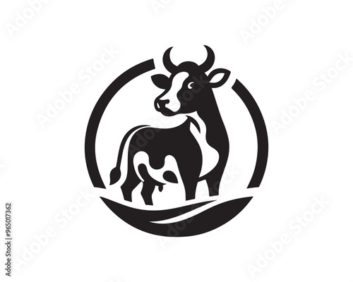 Cow logo vector. Animal farm. Cow icon vector illustration. Cow graphic silhouette black and white.