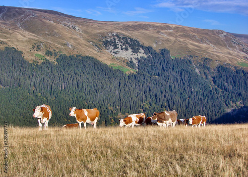 Cows climb on the mountain