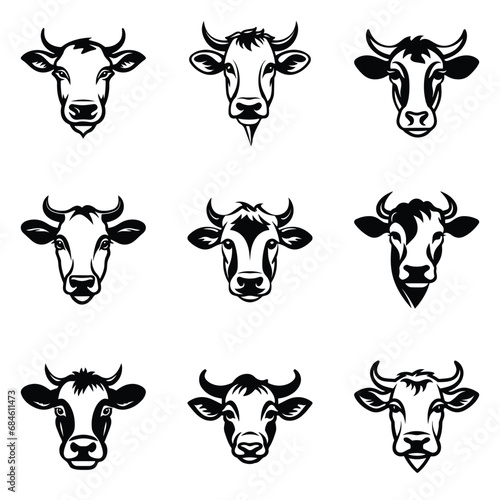 Cows Flat Icon Set Isolated On White Background