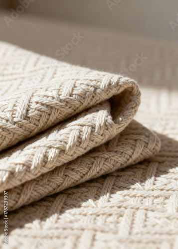 Cozy Beige Knitted Blanket with Textured Pattern for Home Decor and Comfort