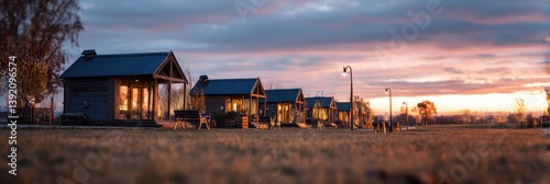 Cozy cabins at sunset, ideal for tranquil getaways