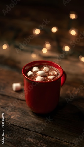 Cozy Christmas cocoa scene warm light evokes holiday charm perfect stock photo visuals