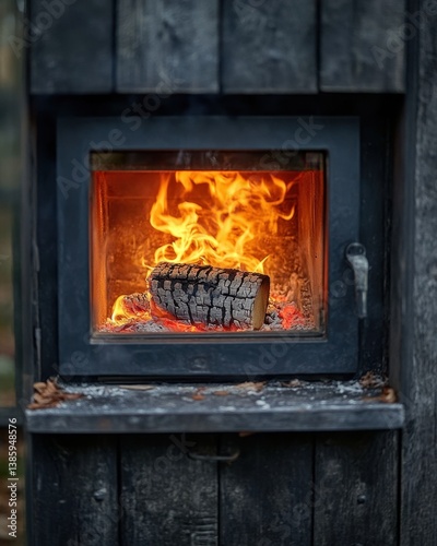 Cozy Fireplace Scene with Burning Wood and Warm Flames in Rustic Cabin Interior for Winter Season