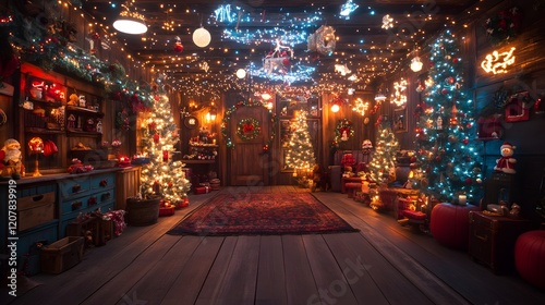 Cozy holiday room decorated with vibrant Christmas lights and festive cheer.