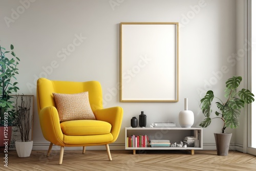 Cozy Living Room with Stylish Yellow Armchair and Green Plants