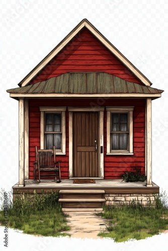 Cozy Red Cabin Illustration