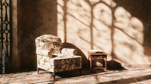 Cozy Vintage Reading Nook with Floral Armchair and Classic Literature, Nostalgic Atmosphere for Book Lovers, Ultra-Detailed, Cinematic Light