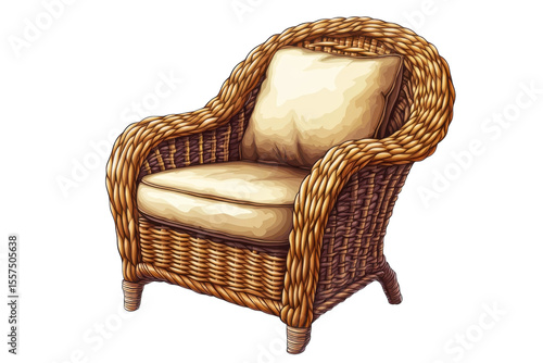 Cozy wicker armchair promising relaxation evoking the serenity of a sun drenched porch on a on transparent background